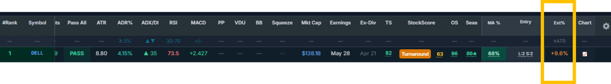 - Extension check (not excessively stretched vs ATR and 10 EMA threshold).