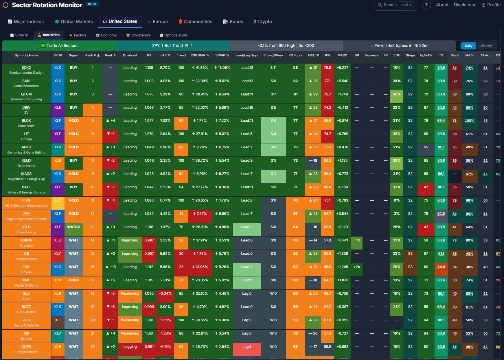 Sector Rotation Monitor turns that macro idea into a daily decision framework.
