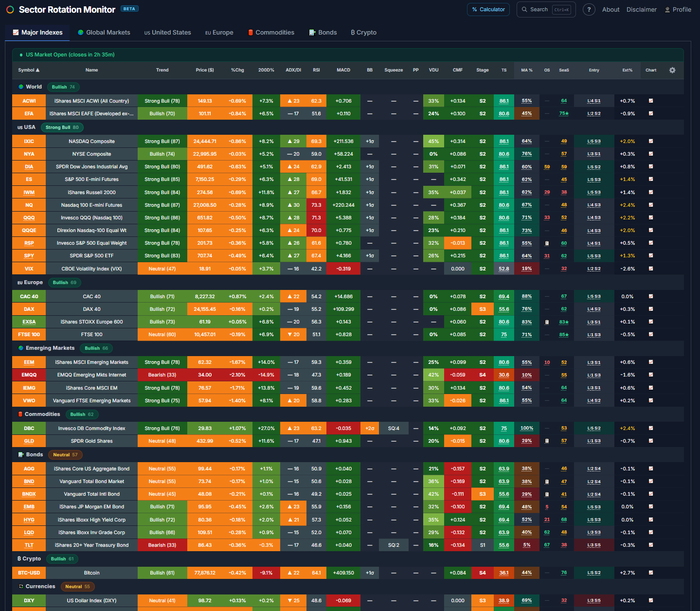 Use Sector Rotation Monitor to identify leadership, validate confluence, and execute with discipline.