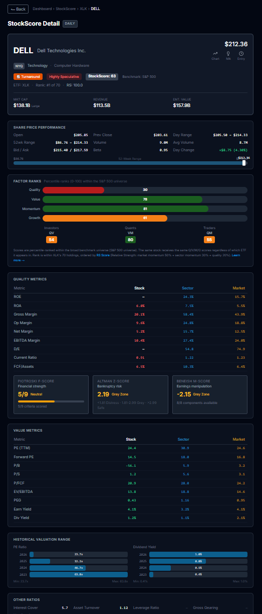 - Sector signal state (for example BUY, HOLD, REDUCE).