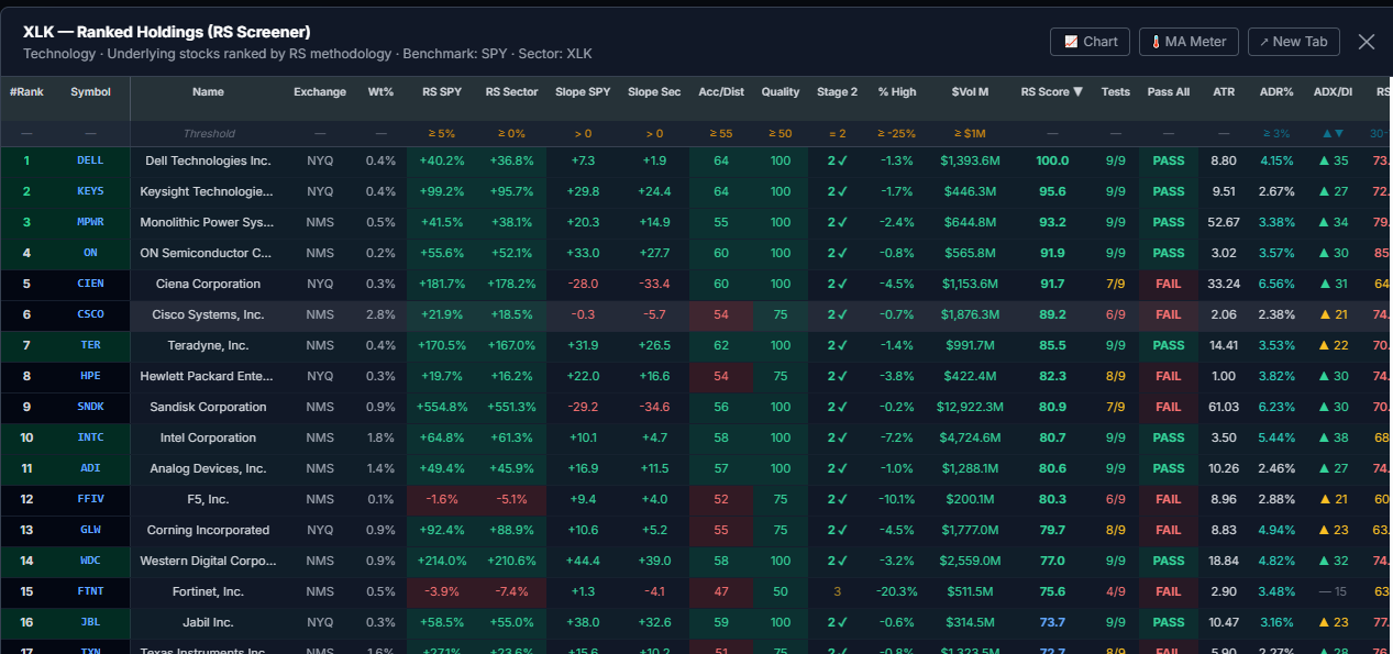 - Top-ranked leader: A sector already near rank 1-3 with strong breadth and confirmation.
